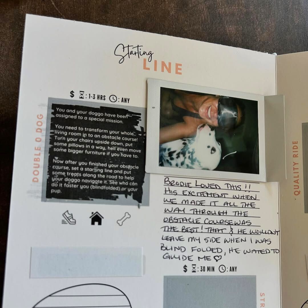 No worries—your pup can still have a blast! Doggo Unleashed was designed with all dogs in mind, and about 80% of the activities can be enjoyed by pups with disabilities or easily modified to fit their abilities. We encourage you to get creative in adapting challenges Because every dog—no matter their abilities—deserves the best adventures!