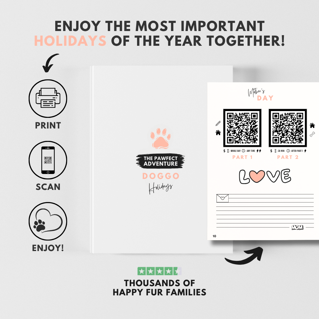 We've carefully considered all different sizes, breeds, ages, and even excitement levels while making this book. So it doesn't matter if you just met your doggo or you've been a family for quite a bit - we guarantee you will enjoy this book!